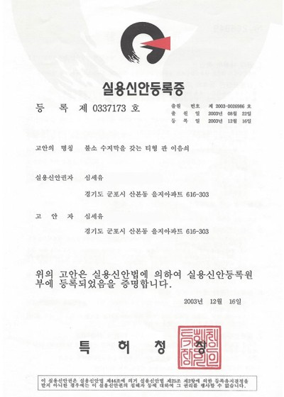 Patent Certificates Multi-Layer Tube Patent No.10-1694354